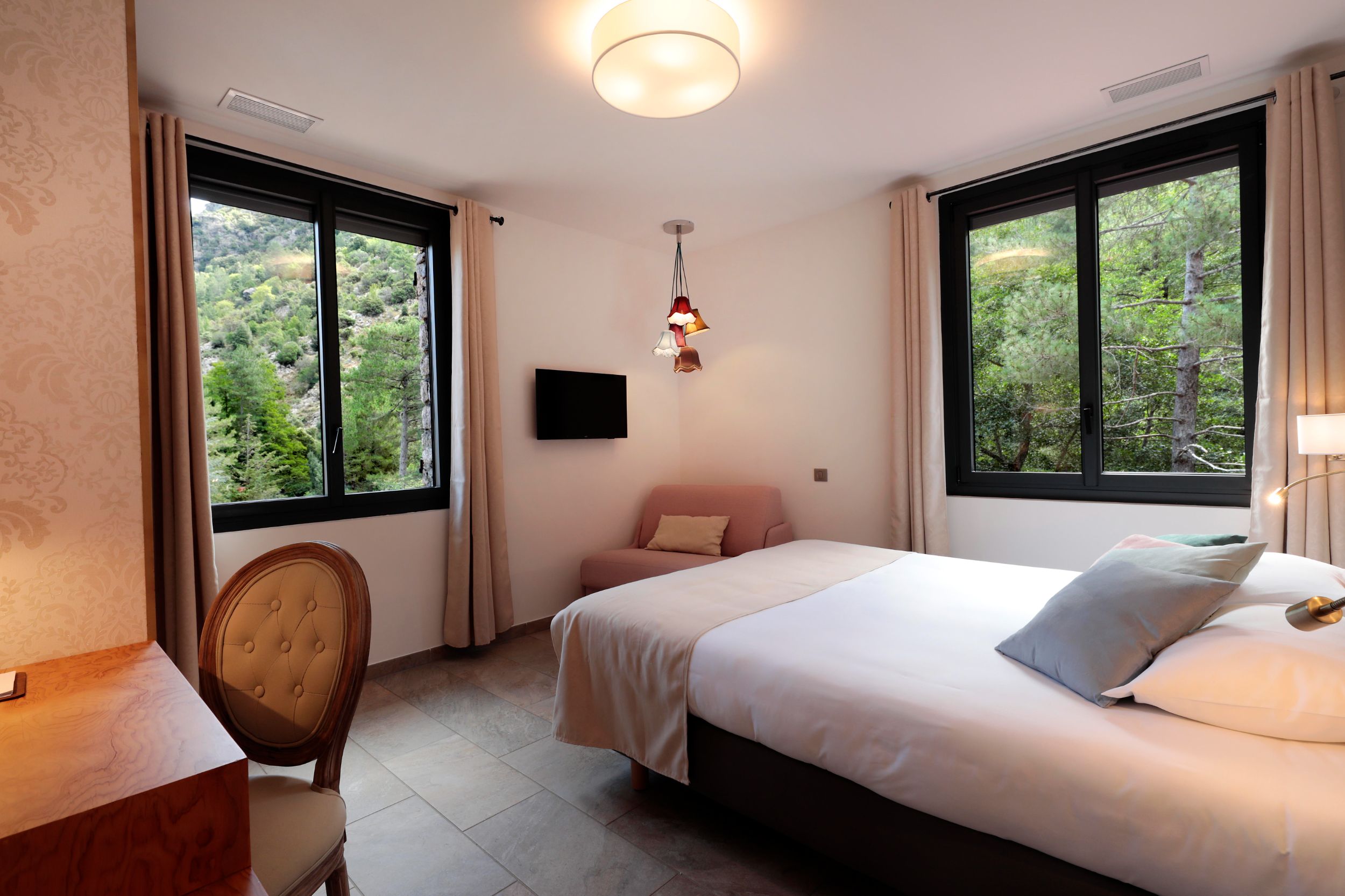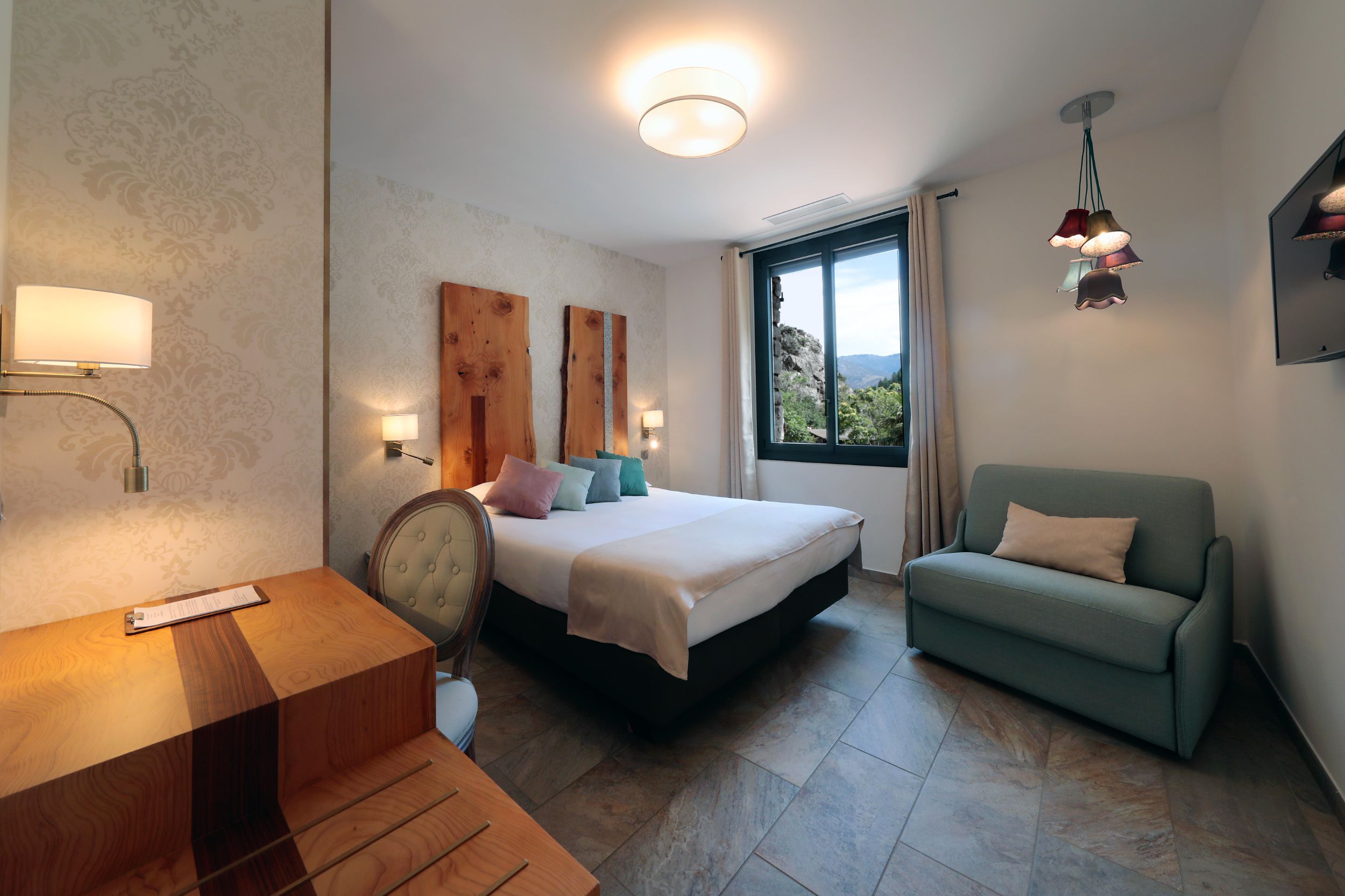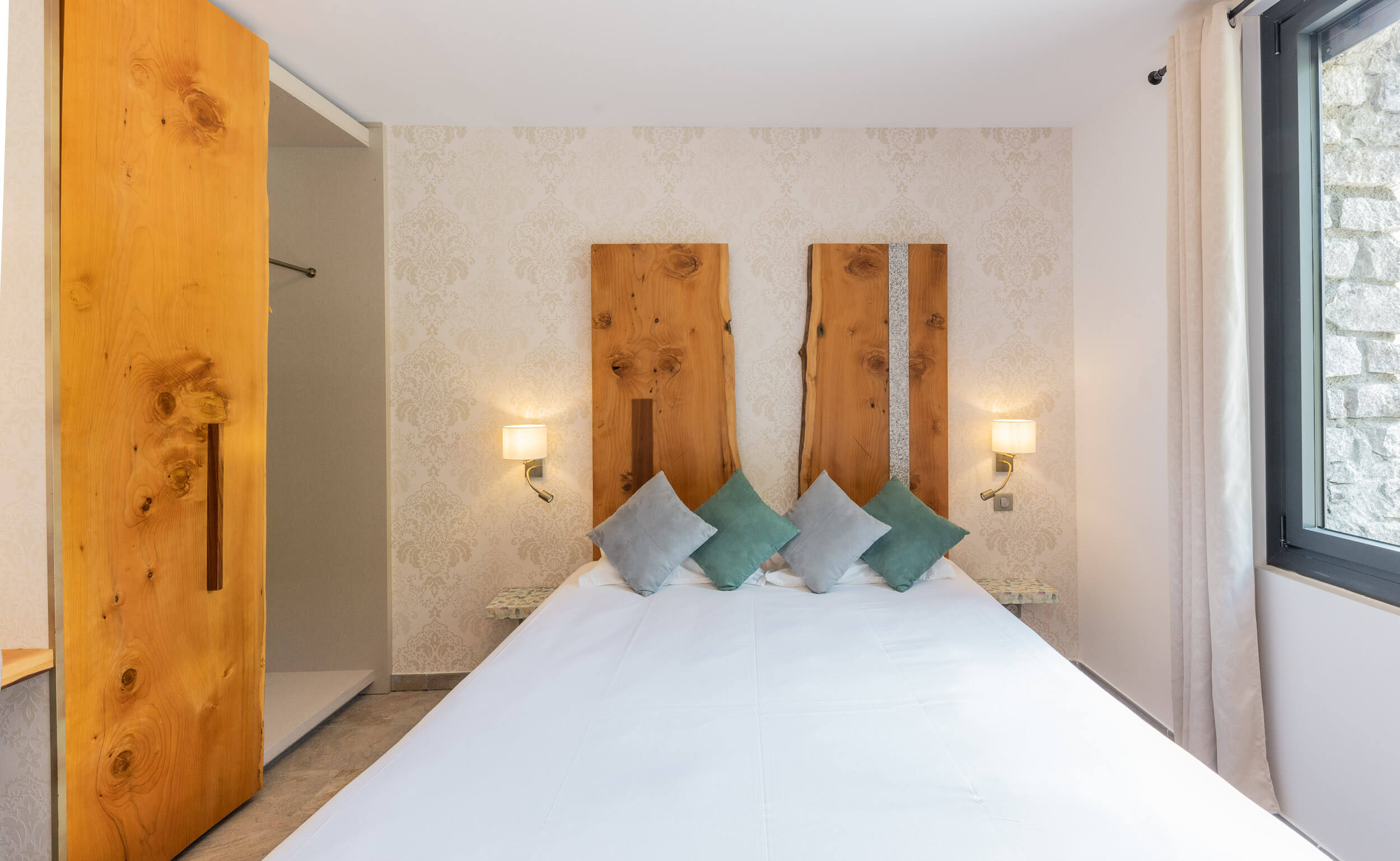Situé à deux kilomètres de Corte, capitale culturelle chargée d’histoire, dans la Vallée de la Restonica, en bordure de rivière, cette solide maison de pierre construite il y a plusieurs années, berceau de tous les souvenirs des familles Delfour-Colonna, comprend 7 chambres de charme.